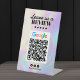 Encourager les commentaires en ligne avec ce stand de revue holographique accrocheur. La conception irisée ajoute une touche de style moderne à votre entreprise, tandis que le code QR proéminent permet aux clients de laisser des commentaires sur votre profil Google Business.