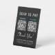 Simple panneau de piédestal noir de table moderne pour votre entreprise avec les codes QR Venmo et Paypal pour que les clients scannent pour les paiements. Ajoutez vos codes QR, nom de l'entreprise, numéro de téléphone et adresse rue dans une typographie blanche simple.