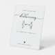 Le design comporte un signe Please Practice Safe Distancing dans un script de calligraphie manuscrit. Customisez facilement les messages et les noms de choix. Parfait pour toute table de station de nettoyage mariage.