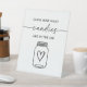 Invitation baby shower invités à deviner combien de bonbons sont dans le bocal avec ce panneau de table simple et élégant, avec un script moderne avec coeur.
