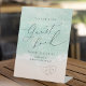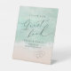 Beau turquoise abstraite aquarelle scintillante vague d'océan et les coeurs dans l'arrière - plan de plage de sable, surmonté d'un script élégant et d'élégante police serif, moderne et simple. Grand panneau d'invité mariage pour la douche nuptiale de plage nautique, mariage de destination tropicale, soirée sur le thème de l'océan côtier.