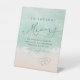 Beau turquoise abstraite aquarelle scintillante vague d'océan et les coeurs dans l'arrière - plan de plage de sable, surmonté d'un script élégant et d'élégante police serif, moderne et simple. Grand signe de mémoire d'amour pour la douche nuptiale nautique, mariage de plage, anniversaire, fête de remise de diplômes, fête de retraite, funérailles, etc. Mariage moderne Script Beach Hearts