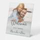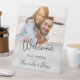 Ce panneau est parfait pour célébrer votre journée spéciale, et souhaiter la bienvenue à vos invités. Le panneau a un arrière - plan de couleur argent faux élégant avec une police de script de style manuscrit moderne noir pour les noms. Personnalisez et ajoutez votre propre photo.