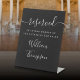 Un élégant script noir et blanc réservé au père du panneau commémoratif de la mariée. Réservez un siège à votre cérémonie à la table à laquelle il aurait siégé. Conçu par Thisisnotme©
