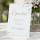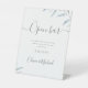 Feuilles botaniques modernes aquarelle dans le bleu poussiéreux et gris élégant script, simple et élégant. Grand panneau de bar ouvert mariage pour mariage de jardin botanique rustique au printemps et en été. Voir toutes les pièces correspondantes dans la collection.