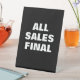 Panneau contemporain noir et blanc "All Sales Final" adapté aux tablettes ou aux comptoirs dans les magasins de détail, les boutiques, les kiosques d'artisanat, etc. lors des promotions de vente.