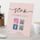 Signe de calligraphie moderne "connectez-vous avec nous". Customisez ce panneau avec votre code QR, logo d'entreprise et informations sur les médias sociaux. Cliquez sur "customiser plus loin" pour modifier la couleur de l’arrière - plan afin de l’adapter au jeu de couleurs de votre entreprise.
