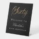 Un signe de bienvenue pour une fête du 60e anniversaire. Arrière - plan noir. Soixante écrits avec un grand script de style en lettres d'or. Personnalisez et ajoutez un nom.