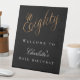 Un signe de bienvenue pour une fête du 80e anniversaire. Arrière - plan noir. Soixante écrits avec un grand script de style en lettres d'or. Personnalisez et ajoutez un nom.