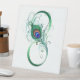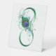 Le symbole de l'infinity with a bright, green, artistic peacock feather on a white background. Tattoo style.