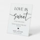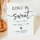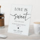 Ceci est un panneau de piédestal de table de prise de traitement de mariage minimaliste moderne élégant Love Is Sweet !