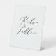 Cette délicate calligraphie noire mariage enfant, panneau de piédestal de table est parfait pour un mariage moderne. Le design minimaliste romantique présente une belle et élégante typographie noire sur un arrière - plan blanc au look épuré et sobre.