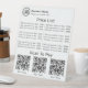 Ce panneau élégant et moderne propose non seulement une liste de prix claire et facile à lire pour vos produits ou services, mais permet également aux clients de faire facilement des paiements électroniques par l'intermédiaire de codes QR. Personnalisez le panneau pour s'adapter à votre marque et affichez les articles et les prix correspondants de manière visuellement attrayante. Avec l'option permettant aux clients d'analyser un code QR pour payer, le processus de paiement devient transparent et sans contact, améliorant à la fois l'efficacité et la sécurité. Faites le prochain pas vers l'avenir des paiements, et créez une expérience d'achat pratique et moderne pour vos clients appréciés. Tous les styles, couleurs et tailles de texte peuvent être modifiés selon vos besoins. Si vous avez besoin d'aide ou d'articles correspondants, n'hésitez pas à me contacter.
