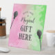 This enchanting pedestal sign lets everyone know just where to leave their gifts—with a magical “Place Your Magical Gift Here” message with a pink and green background and wicked witch hat. This gift table sign will pair nicely with our other Wicked party decor.