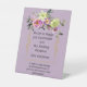 Un panneau mariage permet aux clients d'utiliser un désinfectant à main que vous fournirez sur une table derrière le panneau. Consultez ce magasin pour trouver de jolis designs sur de petites bouteilles. Le panneau est un violet clair avec des fleurs rose et vert citron, un cadre et des instructions en faux or. Merci à Creative Fabrica et Design Cuts pour certains des éléments dans le design. Tous les mots peuvent être changés.