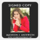 Signed Copy Author Writer Photo Web Black Square Sticker