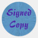 A sticker label to indicate a book, magazine, article, photo, etc., has an author's / illustrator's/ artist's/ photographer's autograph attached.