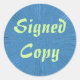 A sticker label to indicate a book, magazine, article, photo, etc., has an author's / illustrator's/ artist's/ photographer's autograph attached.