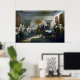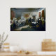Painting showing Thomas Jefferson, John Adams, Roger Sherman, Robert Livingston, and Benjamin Franklin presenting the first draught of the Declaration of Independence to the Second Continental Congress. Less than a week later, on July 4, 1776, the colonial delegates signed the Document. Celebrate American History with this digitally restored vintage war poster product from The War Is Hell Store.