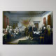 Painting showing Thomas Jefferson, John Adams, Roger Sherman, Robert Livingston, and Benjamin Franklin presenting the first draught of the Declaration of Independence to the Second Continental Congress. Less than a week later, on July 4, 1776, the colonial delegates signed the Document. Celebrate American History with this digitally restored vintage war poster product from The War Is Hell Store.