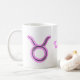 Taurus star sign symbol and name on white mug.