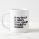 This mug is for the dedicated readers who understand that when a book is open, silence is golden. With the bold statement, 'If My Book Is Open, Your Mouth Should Be Closed,' it's a humorous yet true reminder for anyone who interrupts your reading time. Ideal for book lovers, introverts, or anyone who appreciates the quiet peace of getting lost in a good story. Perfect for your morning coffee or tea, this mug ensures you get the tranquility you need to dive deep into your fictional world without distractions.
