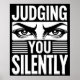 A striking black and white design featuring intense, watchful eyes paired with the bold phrase "Judging You Silently." This edgy and humourous design is perfect for introverts, sarcastic individuals, and those who love a minimal yet powerful statement. Ideal for t-shirts, hoodies, and accessories that showcase attitude without saying a word!