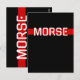 A postcard that speaks without saying a word. The Silent Signal design features clean white typography cut by a vivid red line, with the final letter "E" replaced by a simple dot (·) — a subtle yet powerful reference to Morse code.