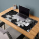 A black and white desk mat featuring a delicate floral design in a soft monochrome style. The contrast between light petals and a darker background creates a calm and elegant look, perfect for modern and minimalist workspaces. This desk mat not only enhances the visual aesthetic of your desk but also provides a comfortable surface for everyday work, study or creative tasks. A stylish choice for those who appreciate clean design, nature-inspired details and a cohesive monochrome setup.