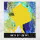 Colourful abstract art original fine art of lady silhouette with colourful watercolor designs in blue and gold.