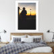 This artistic photograph captures the magical essence of sunset in Salvador, Bahia. The image features an imposing female silhouette wearing a wide-brimmed hat, framed by the golden glow of the setting sun on the horizon of Tomé de Souza Square. Two classic lampposts add a touch of urban elegance and nostalgia to the scene, while the colors of the sky smoothly transition from vibrant orange to the deep blue of twilight. It is a work that evokes feelings of contemplation, peace, and the timeless beauty of Northeastern Brazilian culture. Perfect for those seeking a decorative piece that combines mystery, sophistication, and the warmth of tropical light.