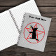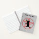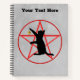 This spiral notebook has the silhouette of a black cat holding up a bright gold star on a red pentagram within a red circle on a light grey background. Customise your text on the front with the template.