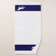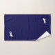 Silhouette de cheval blanc sur ensemble de serviettes bleu marine et blanc. L'image peut être customisée.