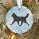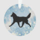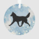 Silhouette de husky sibérien / malamute d'Alaska en noir sur fond hivernal.