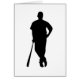 Image simple en noir et blanc d'un joueur de baseball en chauve-souris. Il se tient debout, penché sur une batte de baseball. Ajoutez un message personnalisé à cette conception ou modifiez la couleur de l'arrière - plan.