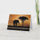 Superbe silhouette d'éléphant et d'arbre devant la carte d'anniversaire du coucher du soleil. 2014 © Design par Julia Bryant.