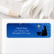 Belle Silhouette Scène de la Nativité Étiquettes de adresse de Noël dans les tons bleu et blanc avec ciel rempli d'étoiles et flocons de neige.*
