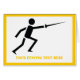 Fencer noir silhouette clôturant carte de voeux personnalisée qui affiche une icône de pictogramme minimaliste d'une silhouette noire d'un fencer tenant son épée et votre texte sur un arrière - plan blanc avec bordure jaune. Ce design cool et moderne est un modèle et entièrement personnalisable.