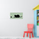 Great poster for cat lovers! Classic black silhouette of a cat playing with a ball of yarn on green background.