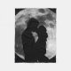 A man and women in love embrace and kiss at night in a front of a full moon.