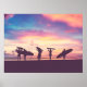 Silhouette Of surfer people carrying their surfboa Poster