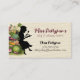 Cute vintage girl or woman chef silhouette wearing a chef's hat, with vintage botanical vegetable pile and aged note paper background on this business card for cooking classes, personal chef, caterer or catering, or other foodie or culinary business.