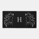Silhouettes et monogramme modernes de cheval blanc sur le Mat noir de bureau.