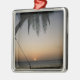 Silhuetted empty hammock at sunset metal ornament