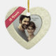 This heart-shaped ornament with a silk style print (not actually fabric) is perfect either for a 12th wedding anniversary (which is traditionally celebrated with silk items) or any other romantic or feminine occasion. Add your own photo to the heart frame and then on the back personalize it with a custom message. Although the text on the dark pink ribbon says '12 years' for those celebrating twelve years of marriage, it can be changed to any other short text of your choice (such as 'I love you'). This design has a slight 3d look -- note that the ornament itself is a flat printed design and is not raised or textured.