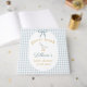 Part of the coordinating Silly Goose Is Soon to Be on the Loose baby shower event suite, this personalized guest book pairs seamlessly with matching invitations, welcome signs, photo backdrop tapestries, paper plates, cups, napkins, favor tags, stickers, address labels, and thank you cards. Styling your event with the full Silly Goose baby shower collection ensures a cohesive blue gingham baby shower theme from the first invitation to the final goodbye.