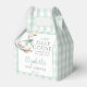 These charming baby shower favor boxes feature a cute little goose wearing a green bow and a green gingham background. Designed by Thisisnotme©