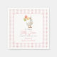 This cute "silly goose" girl's baby shower paper napkin features a goose with a party hat and balloons on a pink gingham plaid background. Personalize it for your needs. You can find matching products at my store.