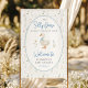 Bienvenue à vos invités avec un charme fantaisiste ! Ce panneau d'accueil baby shower d'inspiration vintage présente une oie douce dans un arc bleu entouré de fleurs douces et délicates. Avec son style de livre d’histoires et son design de style ancien, c’est l’entrée idéale pour une fête de bébé garçon à la fois ludique et élégante.