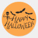 Silly Skeleton Bats Black & Orange Happy Halloween Classic Round Sticker